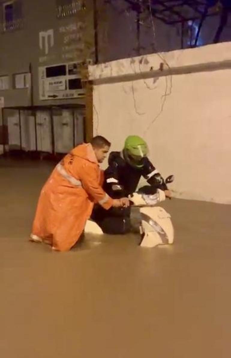 Devlet Bahçeli Bulvarı ile Musa Şahin Bulvarı kavşağının yan sokağında su birikintisi içinde kalan motosikletli, itfaiye ekiplerince kurtarıldı.