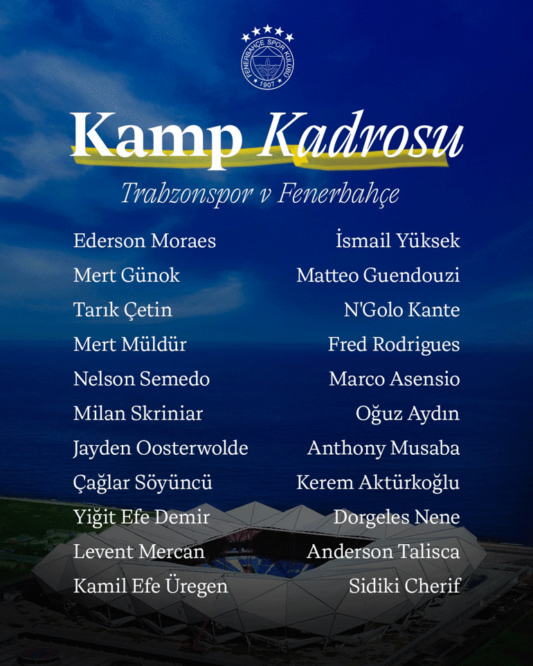 Süper Lig'in 22. haftasında Trabzonspor'a konuk olacak Fenerbahçe'nin kamp kadrosu belli oldu.