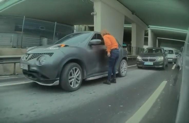 Tartışmanın ardından sürücülerden biri, önünü kestiği aracın camını yumruklayıp yan aynasını kırdı.