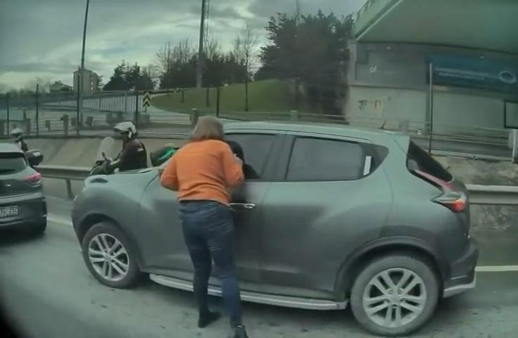 Diğer sürücü ise yaşananları cep telefonu kamerasıyla kaydetti. Saldırgan sürücü daha sonra aracına binerek olay yerinden uzaklaştı.
