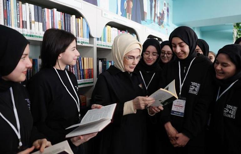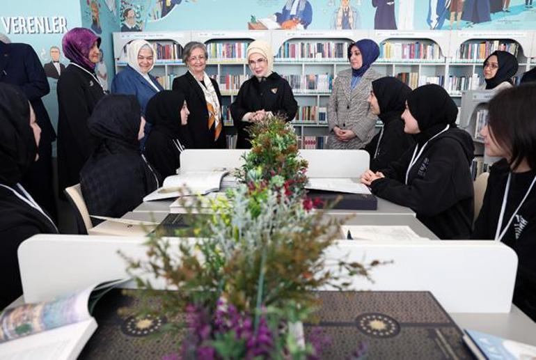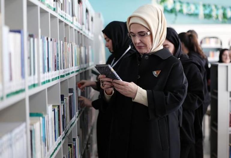 Emine Erdoğan, açılış töreni sonrasında okulun kütüphanesini gezdi. Çeşitli türlerden kitaplar ile satranç masası ve zeka oyunlarının yer aldığı kütüphaneyi inceleyen Erdoğan, buradaki gençlerle sohbet etti.