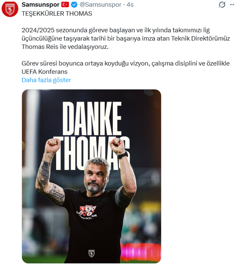 “2024/2025 sezonunda göreve başlayan ve ilk yılında takımımızı lig üçüncülüğüne taşıyarak tarihi bir başarıya imza atan Teknik Direktörümüz Thomas Reis ile vedalaşıyoruz.