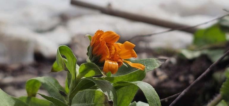 Bitlis’in en çok kar alan ilçelerinden Tatvan’da kar örtüsünün hemen yanı başında açan turuncu renkli aynısefa (calendula) çiçekleri, kışın ortasında adeta baharı müjdeledi.