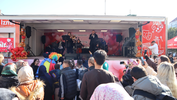 Kocaeli İzmit Belediyesi, 14 Şubat Sevgililer Günü’nde Belediye Meydanı’nda gün boyu süren etkinlikler, ikramlar ve Kent Orkestrası konseriyle kent merkezini sevgi temalı bir festival alanına dönüştürdü