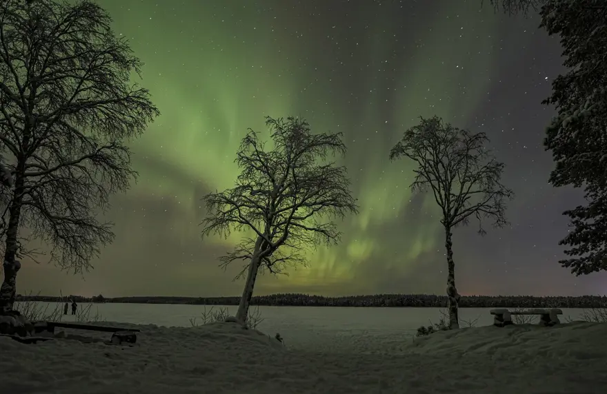 “Ruhların dansı” ismi de verilen Kuzey Işıkları, İsveç’in kuzeyindeki Umea kenti yakınlarındaki Backsjön bölgesinde görüldü.
