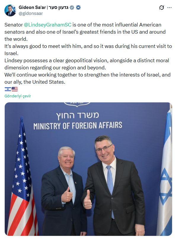 ABD’li Senatör Graham ise görüşme sonrası X hesabından, Bakan Saar’ın İsrail halkı için büyük işler yaptığını savundu.