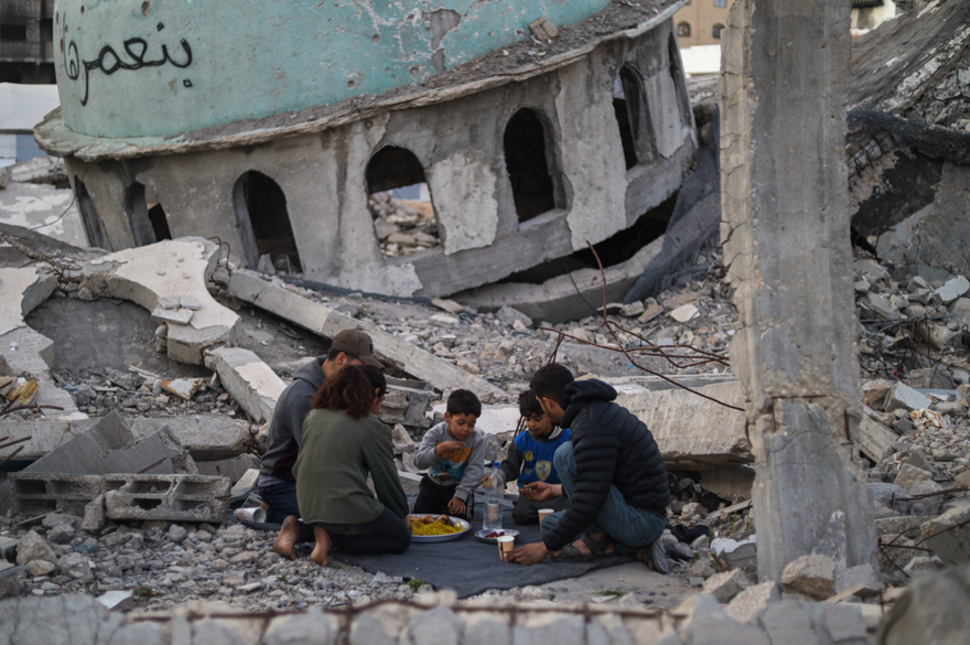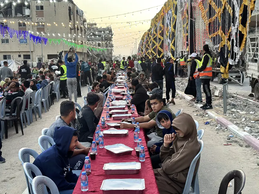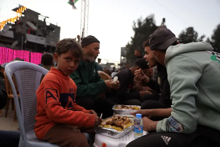 İsrail’in kısıtlamaları nedeniyle yeterli yardım TIR’ının giremediği Gazze’de birçok ailenin iftar sofrası önceki yıllara oranla boş kaldı. Evlerini kaybetmeleri ve gıda sıkıntısı yaşasalar da Gazze’deki Filistinliler, İsrail bombalarının sesi olmadan iftarlarını açmanın mutluluğunu yaşadı.