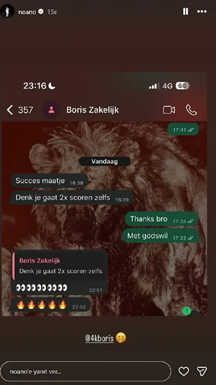 Maç sonrası sosyal medya hesabından dikkat çeken bir paylaşım yapan Lang, karşılaşmadan saatler önce arkadaşının kendisine gönderdiği mesajı yayımladı. Mesajda “Başarılar kanka. Bugün 2 gol atacaksın” ifadeleri yer aldı.