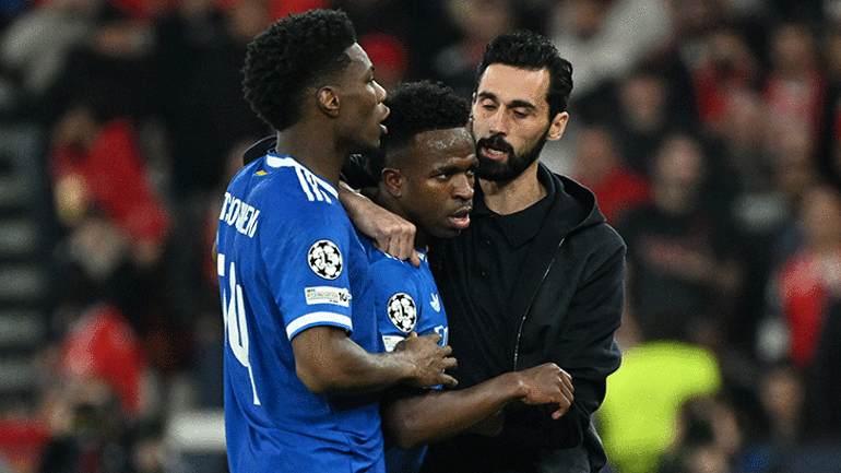 Real Madrid’e maçı kazandıran golü atan Vinicius’un gol sevinci sonrası saha karıştı. Benfica’dan Gianluca Prestianni’nin Vinicius’a ırkçı söylemlerde bulunduğu iddia edildi. Yıldız oyuncu olaylar sonrası sahayı terk etmek istedi ve maç durakladı.