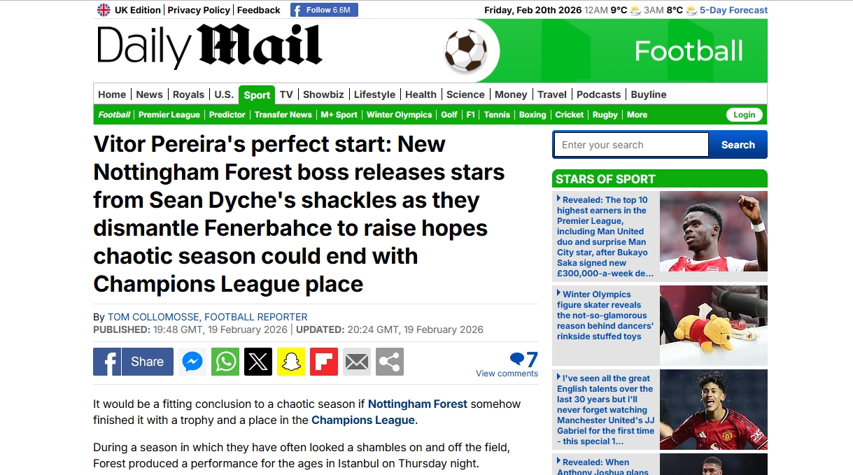 Fenerbahçe’nin Nottingham Forest karşısında aldığı bu farklı yenilgi yabancı basında geniş yer buldu. İşte karşılaşma sonrası dış basında atılan manşetler…