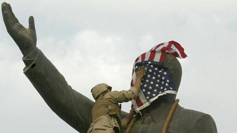 ABD askerlerinin Bağdat’taki Firdevs Meydanında bulunan Saddam Hüseyin heykelini devirmesi Irak işgalinin sembollerinden biri oldu
