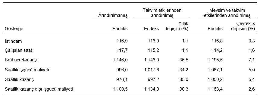 Brüt ücret-maaş endeksi çeyreklik %7,1 arttı