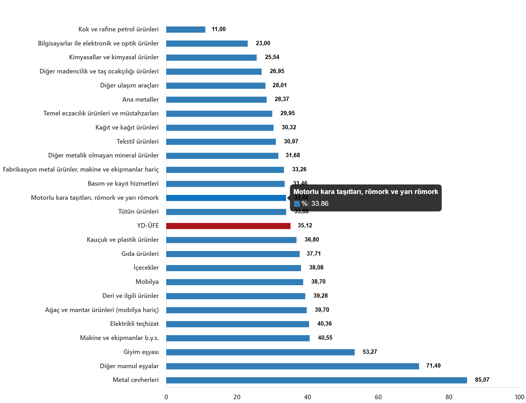YD-ÜFE imalat ürünlerinde yıllık %34,76 arttı