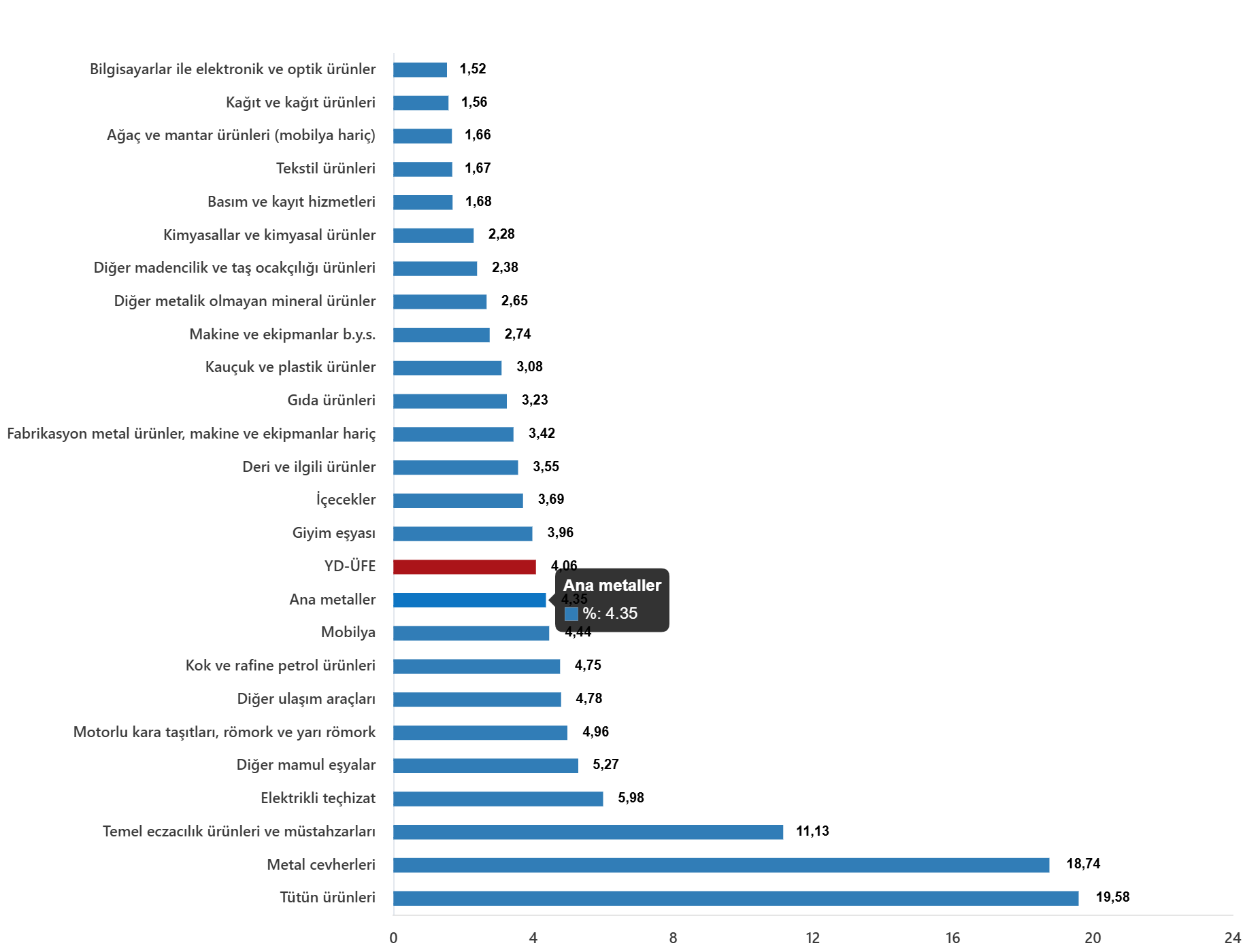 YD-ÜFE imalat ürünlerinde aylık %3,94 arttı