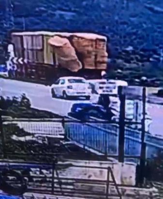 İzmir'gin Kiraz ilçesinde park halindeki TIR'dan düşen saman balyalarının altında kalan Abdurrahman Avcı (53), hayatını kaybetti. O anlar, bir iş yerinin güvenlik kamerasına yansıdı.