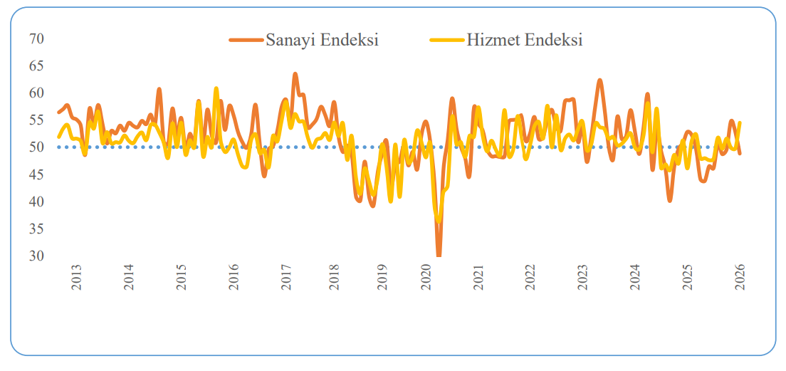 “2026 yılı Ocak ayında mevsim ve takvim etkilerinden arındırılmış SAMEKS Bileşik PMI Endeksi 52,7 seviyesine yükselerek ekonomik faaliyetlerde sınırlı ancak süregelen bir genişlemeye işaret etti. Hizmet sektörü güçlü toparlanma sinyalleri verirken, sanayi sektöründe geçici bir yavaşlama dikkat çekti”.